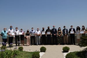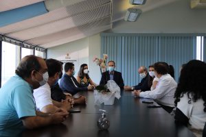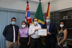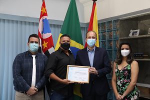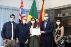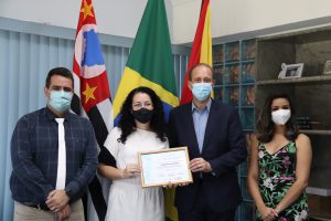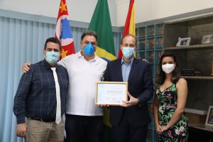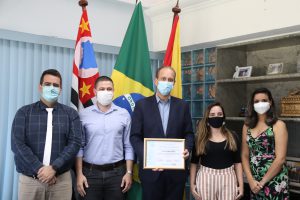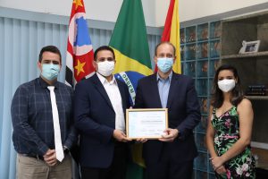 A Prefeitura de Sorocaba homenageou, na manhã desta quinta-feira (25), as instituições da cidade que atuaram como ponto drive-thru de vacinação contra a Covid-19, entregando a cada uma delas um certificado de agradecimento emoldurado, em sinal de gratidão e reconhecimento. A cerimônia ocorreu no gabinete do prefeito Rodrigo Manga, na companhia dos secretários municipais Vinicius Rodrigues (Saúde) e Samyra Toledo (Governo).