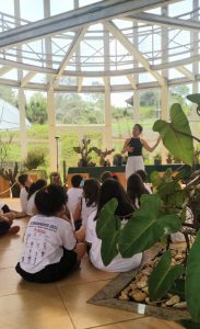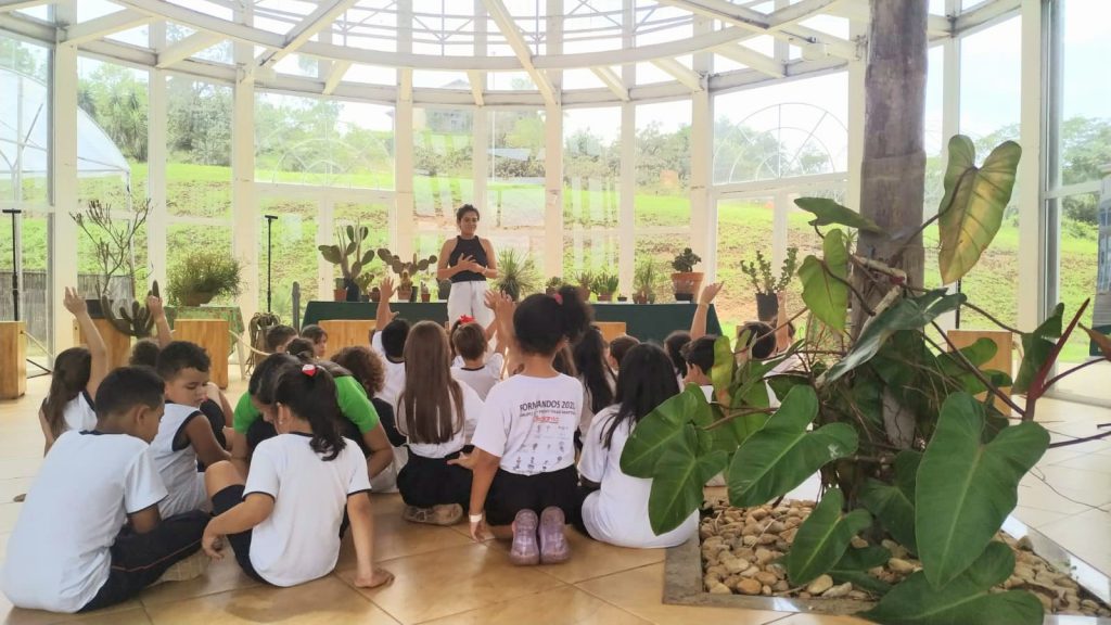 Durante a abertura das atividades, um grupo, com cerca de 40 alunos do Colégio Akalanto, de turmas do 1º e 2º ano do Ensino Fundamental, visitou a exposição. Além de conhecerem os exemplares de plantas, também receberam informações a respeito dos cuidados com o cultivo.