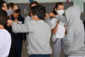 A primeira escola a receber o projeto foi a E.M. Prof. “Flávio de Souza Nogueira”, localizada na Vila Fiori. Lá, alunos do 4º e 5º anos puderam participar de interações com os atletas e a equipe técnica da Liga Sorocabana de Boxe (Lisoboxe).