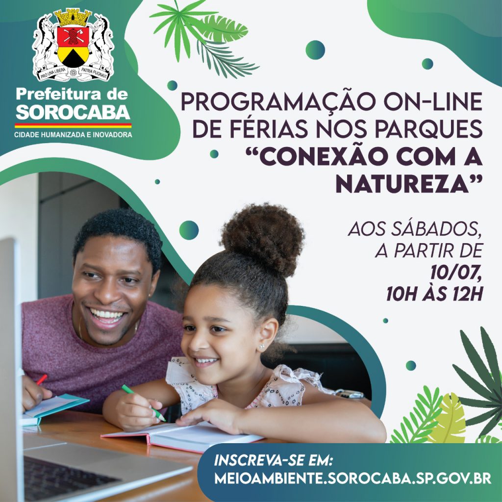 A Prefeitura de Sorocaba, por meio da Secretaria do Meio Ambiente e Sustentabilidade (Sema), oferece, aos sábados deste mês de julho, das 10h às 12h, uma programação on-line especial de férias dos parques municipais, voltada a crianças de 6 a 9 anos de idade e seus familiares. As inscrições já podem ser feitas, pelo site da Sema: https://meioambiente.sorocaba.sp.gov.br. As vagas são limitadas.