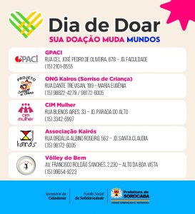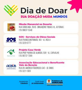 Como parte do movimento, diversas entidades assistenciais e filantrópicas da cidade também receberão doações. Confira!