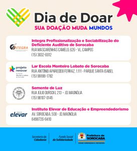 A Prefeitura de Sorocaba promove nesta terça-feira, dia 29 de novembro, por meio da campanha #AFOMENAOEFAKE!, do Fundo Social de Solidariedade (FSS), um grande drive-thru solidário no #DiadeDoar.