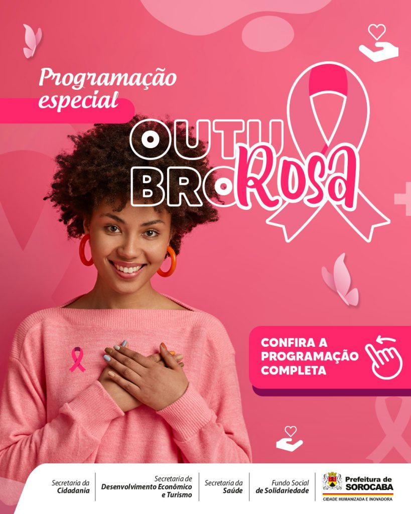 A Prefeitura de Sorocaba, por meio do Fundo Social de Solidariedade (FSS), realizará, neste mês de outubro, uma série de ações em alusão à campanha Outubro Rosa. Confira a programação, abaixo.