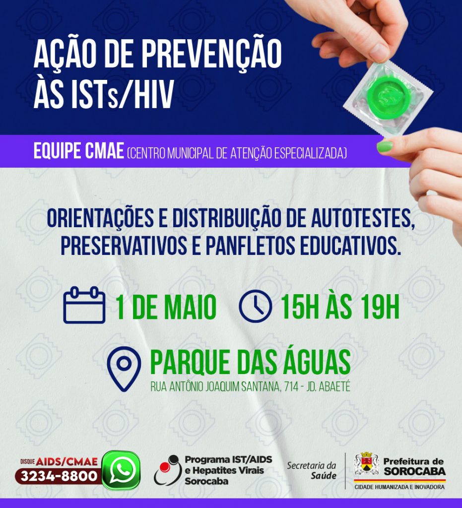 Com o objetivo de prevenir e combater as ISTs (Infecções Sexualmente Transmissíveis), a Prefeitura de Sorocaba, por meio do Programa Municipal de Prevenção e Combate a IST/AIDS/Hepatites Virais e do Centro Municipal de Atenção Especializada (CMAE), da Secretaria Municipal da Saúde (SES), realizará uma ação de prevenção e combate às ISTs e ao HIV (Vírus da Imunodeficiência Humana).