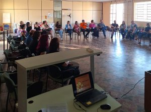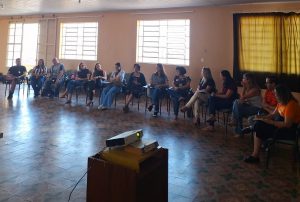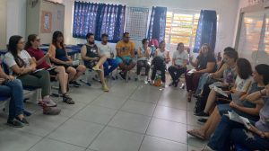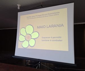 Após a reunião intersetorial, em parceria com o CREAS Norte, o grupo esteve na escola E.M. “Renice Seraphim” para uma roda de conversa com os educadores, abrangendo a temática do Maio Laranja. Em seguida também foi realizada a distribuição de materiais informativos.