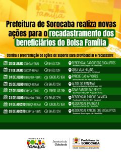 Com o objetivo de auxiliar os moradores de Sorocaba no recadastro necessário para recebimento do programa federal Bolsa Família, a Prefeitura de Sorocaba, por meio da Secretaria da Cidadania (Secid), junto aos agentes dos CRASs (Centros de Referência em Assistência Social), está alertando a população sobre essa necessidade e dando todo o suporte possível aos munícipes para a atualização de seus dados pessoais no Cadastro Único (CadÚnico).