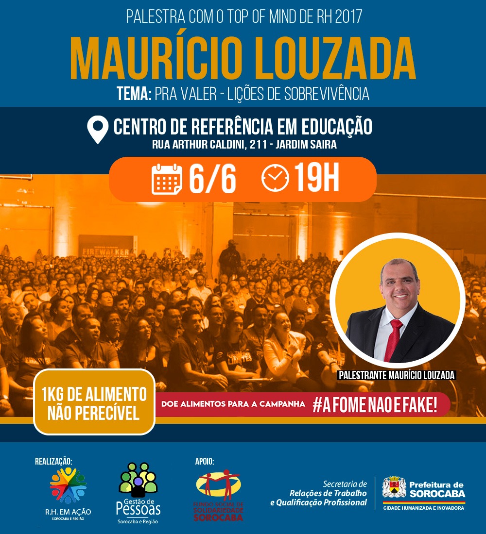 Os participantes assistirão a uma palestra do Top of Mind de RH 2017, Mauricio Louzada. Ele é especialista em palestras motivacionais, desenvolvimento de equipes e motivação, além de ser autor do livro “Pra Valer”, lançado em 2013, publicado no Brasil, nos Estados Unidos e no Canadá.