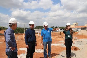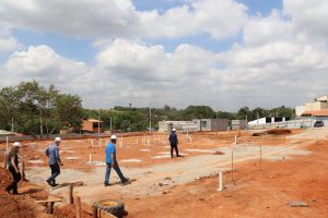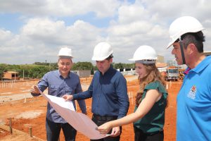 Em seguida, a comitiva da Sedu esteve no local onde está sendo construída uma das duas novas unidades escolares no Parque São Bento, na Rua Alcino Oliveira Rosa, s/n. Este CEI terá capacidade para receber até 188 alunos do bairro e adjacências. Toda a parte de terraplanagem e redes de água e esgoto estão prontas. Além disso, os perfis de PVC e demais materiais que serão utilizados na construção estrutural do prédio já chegaram e está tudo pronto para iniciar a nova etapa construtiva.