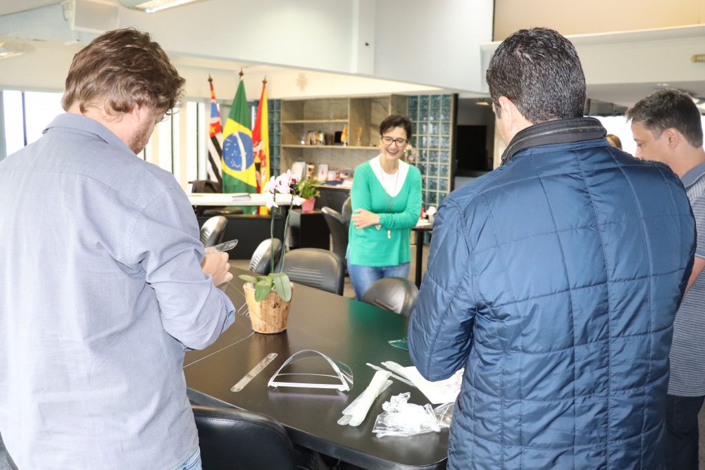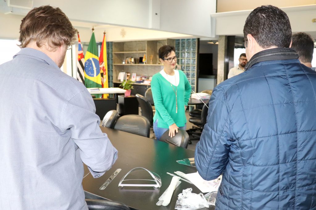 A prefeita de Sorocaba, Jaqueline Coutinho, recebeu em seu gabinete na tarde desta terça-feira (14) a doação de 400 protetores faciais. A entrega foi realizada por membros do Bloco Boca a Boca. Os itens serão utilizados pelos servidores da Secretaria da Saúde (SES).
