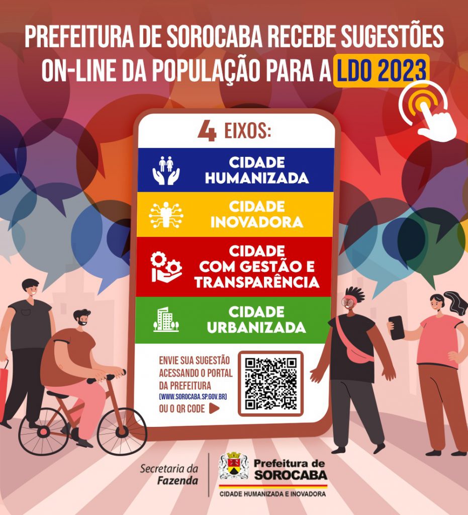 A Prefeitura de Sorocaba, por meio da Secretaria da Fazenda (Sefaz), abre, nesta quarta-feira (23/02), o prazo para recebimento on-line de sugestões da população que podem ser incluídas no projeto da Lei de Diretrizes Orçamentárias (LDO) 2023.