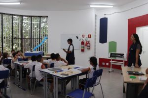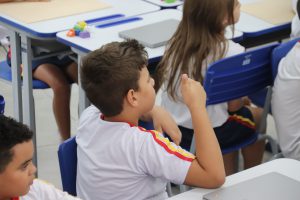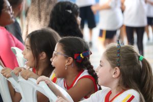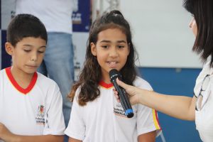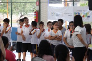 Os alunos do 3º ano do Ensino Fundamental fizeram uma apresentação, sob a supervisão da professora Sônia, com um jogral sobre o texto “O Silêncio”, de Carlinhos Brown e Arnaldo Antunes.
