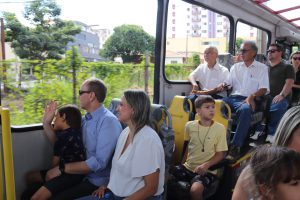 Com a proposta de manter sempre viva a história da cidade, por meio de seus pontos turísticos e culturais, a Prefeitura de Sorocaba, via Divisão de Turismo, ligada à Secretaria de Desenvolvimento Econômico, Trabalho e Turismo (Sedettur) realizou, com o apoio da Secretaria de Cultura (Secult), Secretaria de Comunicação (Secom) e demais secretarias envolvidas, relançou, na manhã deste domingo (2), o ônibus turístico, com passeios gratuitos no City Tour 2023. A volta do programa reuniu, em uma edição-piloto, cerca de 40 pessoas, entre autoridades e profissionais da rede hoteleira e turística da cidade, com a presença do prefeito Rodrigo Manga, da primeira-dama, Sirlange Frate Maganhato, dos secretários municipais Paulo Henrique Marcelo (Sedettur); Luiz Antonio Zamuner (Cultura); Thiago Santoro (Meio Ambiente, Proteção e Bem-Estar Animal) e Fernanda Burattini (Comunicação); mais o ouvidor-geral do Município; Evandro Bueno, e o vereador Luís Santos, que é presidente da Comissão de Turismo da Câmara Municipal.