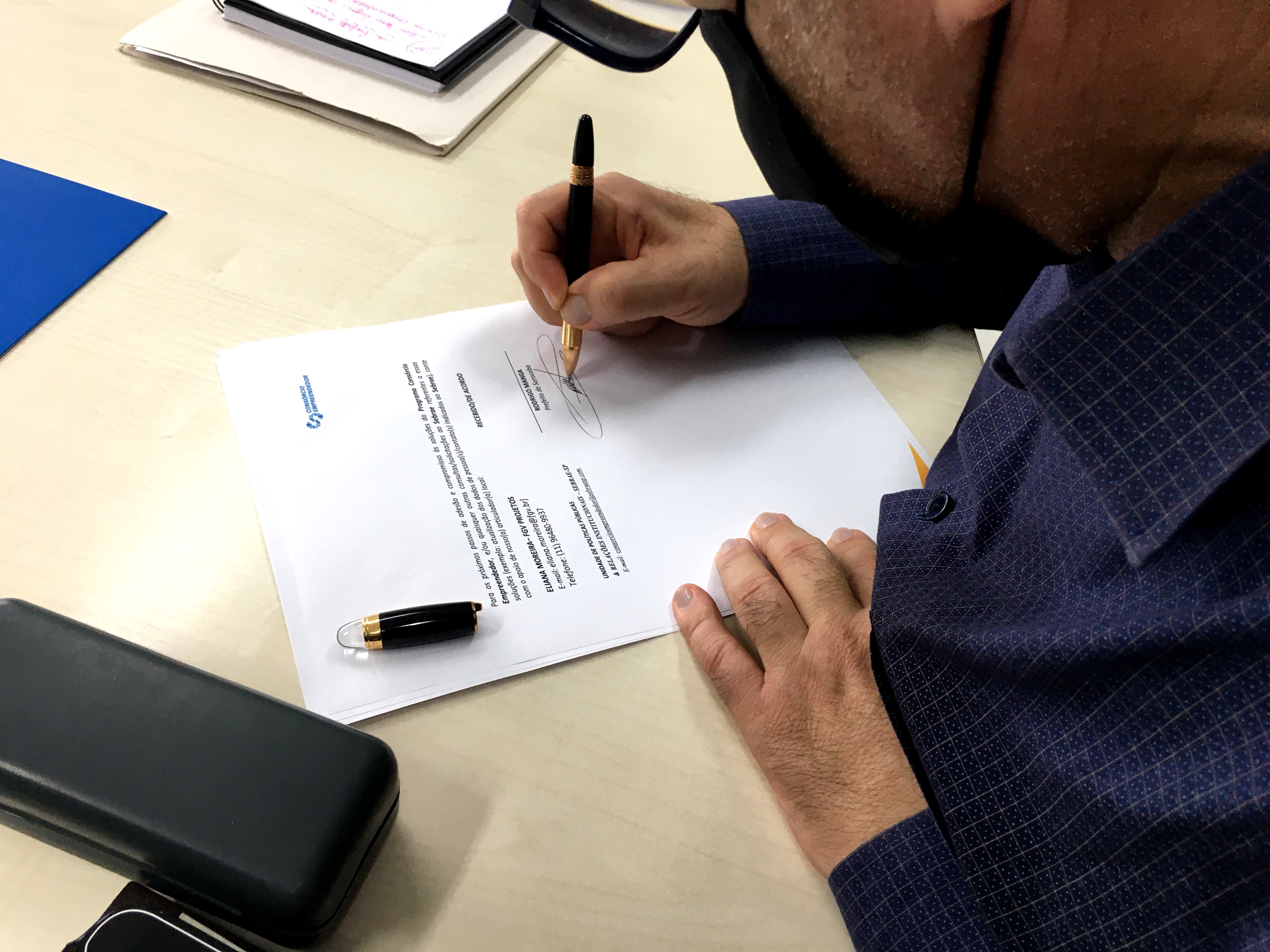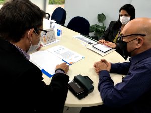 Durante a reunião, foi assinada pelo vice-prefeito Fernando a adesão a um voucher que traz informações do projeto que disponibilizará às equipes da Prefeitura mais de 600 horas de capacitação por um corpo técnico especializado de consultores do Sebrae.