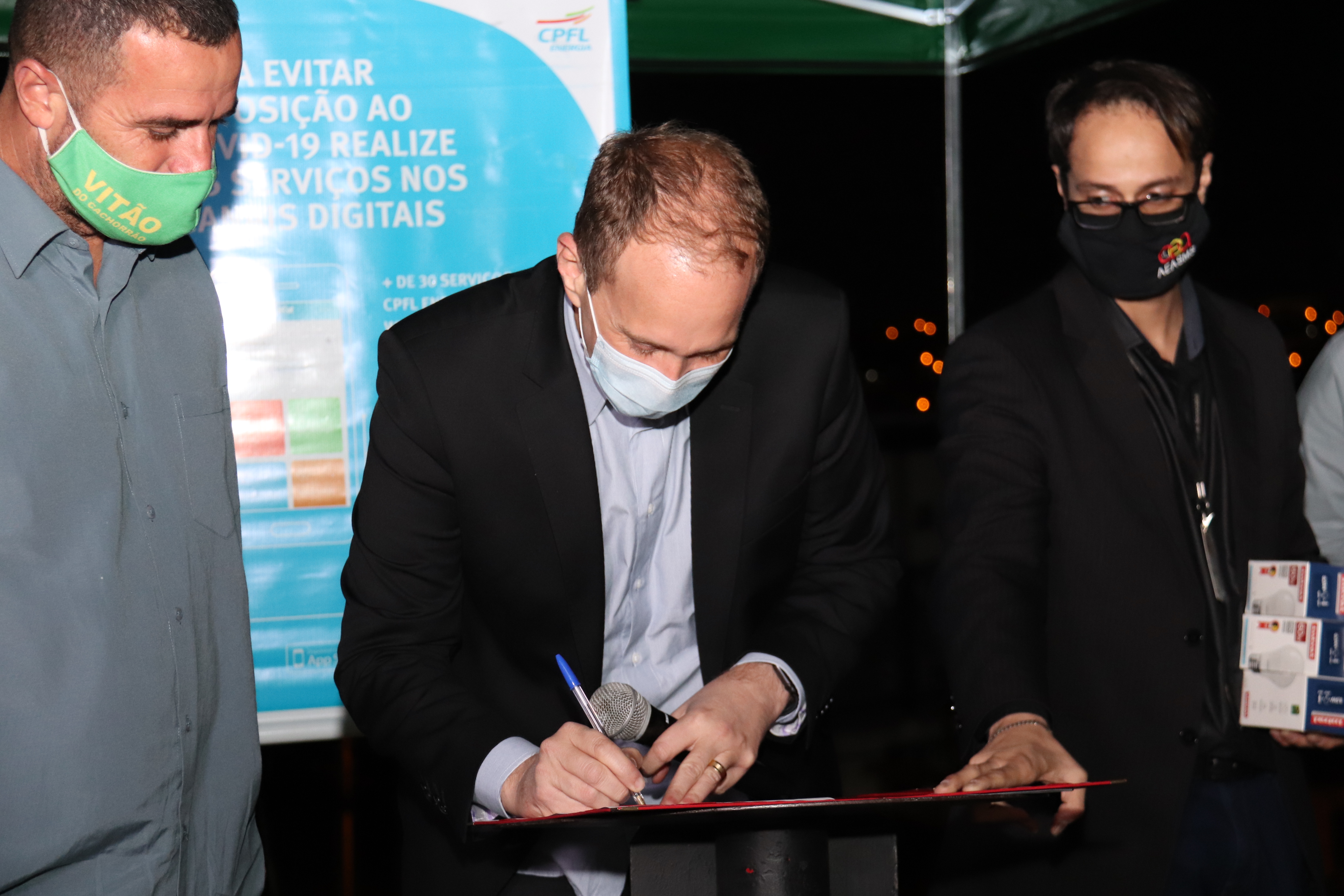 O prefeito Rodrigo Manga anunciou a novidade, acompanhado dos secretários Tiago da Guia (Habitação e Regularização Fundiária) e Fernanda Burattini (Comunicação) e do ouvidor-geral do município, Evandro Bueno. Também estiveram presentes o consultor de relacionamento da CPFL Piratininga, Fábio Barroso, o consultor de atendimento da CPFL, Fabrício Souza, e o vereador Vitão do Cachorrão.