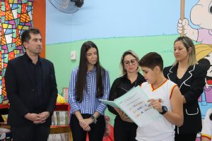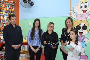 O evento contou com a presença do secretário da Educação (Sedu), Marcio Carrara; da diretora da escola, Mariana de Freitas; da vice-diretora, Camila Rodrigues; da orientadora pedagógica, Ana Paula Alvarenga Tibo de Oliveira; do vereador Salatiel Hergesel, além de outros gestores e professores da unidade escolar e representantes da comunidade, entre eles os familiares da professora homenageada que dá nome à nova Sala de Leitura.