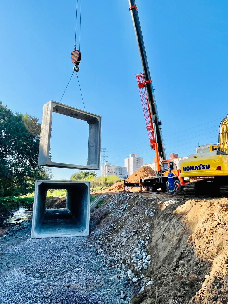 Prefeitura e Saae/Sorocaba instalam aduelas em obra de interligação viária sobre córrego no Jardim Magnólia