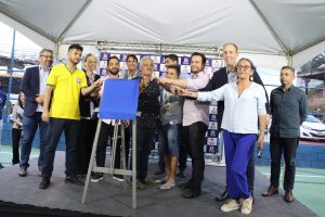 Na ocasião, o prefeito esteve acompanhado dos secretários municipais Darwin de Almeida Rosa (Serviços Públicos e Obras) e Carlos Eduardo Paschoini (Mobilidade), além do diretor-presidente da Urbes – Trânsito e Transportes, Sergio Barreto; do ouvidor-geral do Município, Evandro Bueno; e dos líderes comunitários Wanderley Diogo, que já foi vereador, Everton Amendoim e Zilo Cláudio. Representando a empresa Chimar, parceira do Executivo nessa obra, prestigiaram o evento os diretores, Reinaldo Chicarolli e Sidney Chicarolli, além da gerente de Marketing, Léia Lima.