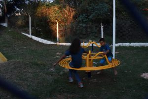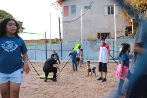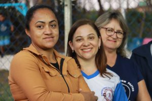 A moradora do Jardim Eliana, Roberta Elaine da Silva, que é cuidadora de criança com deficiência na Escola Estadual “Professor José Quevedo”, prestigiou a entrega da revitalização da quadra poliesportiva e adorou as melhorias realizadas. “Ficou muito melhor e dá para ver a felicidade nos olhos das crianças. Eles amaram”, contou a munícipe, ao lado dos filhos Gabriele, de 9 anos, e Alejandro, de 1 ano.
