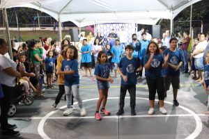 Com a presença de inúmeras crianças, jovens e adultos, a Prefeitura de Sorocaba entregou, nesta terça-feira (4), a revitalização da quadra poliesportiva localizada na Rua Américo Pimenta Vaz Guimarães, na Vila dos Dálmatas, na região do Cajuru. A obra faz parte do programa “Sorocaba Linda de Verdade” e foi realizada em parceria com a empresa 7G Construções, por meio de medida mitigadora.