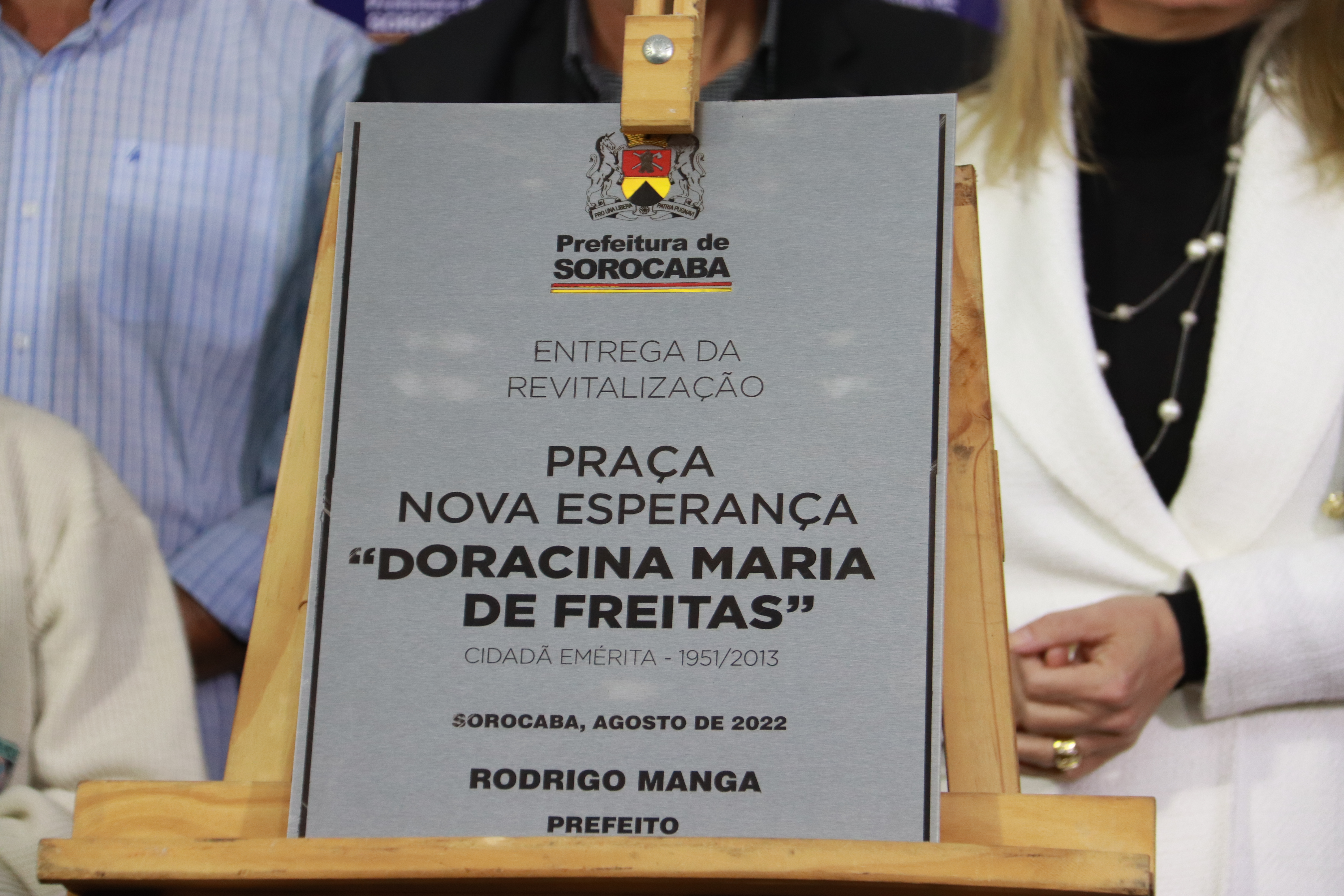 A Prefeitura de Sorocaba, por meio da Secretaria de Serviços Públicos e Obras (Serpo), entregou, nesta segunda-feira (22), a revitalização da Praça “Doracina Maria de Freitas”, no Jardim Nova Esperança, Zona Oeste da cidade. As obras ocorreram em parceria com a empresa JC Felivel Administração de Bens Ltda., por meio de medida mitigadora.