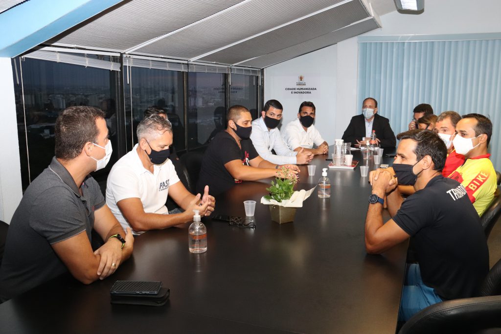 Representantes de assessorias esportivas que atuam na cidade de Sorocaba, interessadas em uma parceria com a Prefeitura de Sorocaba para fomentar a prática do ciclismo, participaram de reunião no Paço Municipal, na quinta-feira (4).