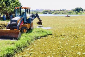 Prefeitura inicia nova remoção de plantas aquáticas no Parque das Águas