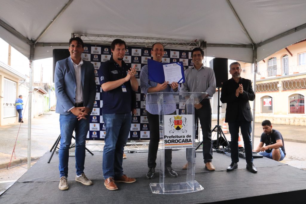 Além do prefeito Rodrigo Manga e do diretor-geral do Saae/Sorocaba, Tiago Suckow, também participaram do evento o secretário de Mobilidade (Semob), Carlos Eduardo Paschoini; a secretária de Comunicação (Secom), Fernanda Burattini; o ouvidor-geral do Município, Evandro Bueno; o diretor de Engenharia da Brio Incorporadora Ltda., Fernando Fortes, e moradores locais.