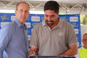 Além do prefeito, estiveram presentes os secretários municipais Darwin de Almeida Rosa (Serpo) e Carlos Eduardo Paschoini (Mobilidade – Semob), mais o ouvidor-geral do Município, Evandro Bueno. A Nova UBA Empreendimentos Imobiliários Ltda. esteve representada no ato pela coordenadora de Incorporação, Keronly Werneck, e a 5A Pavimentação, pelos sócios proprietários Alessandro Colombo e Adriano Colombo.