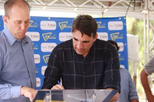 Finalizando o ato, o prefeito Rodrigo Manga e demais autoridades presentes assinaram o termo de início das obras de pavimentação.