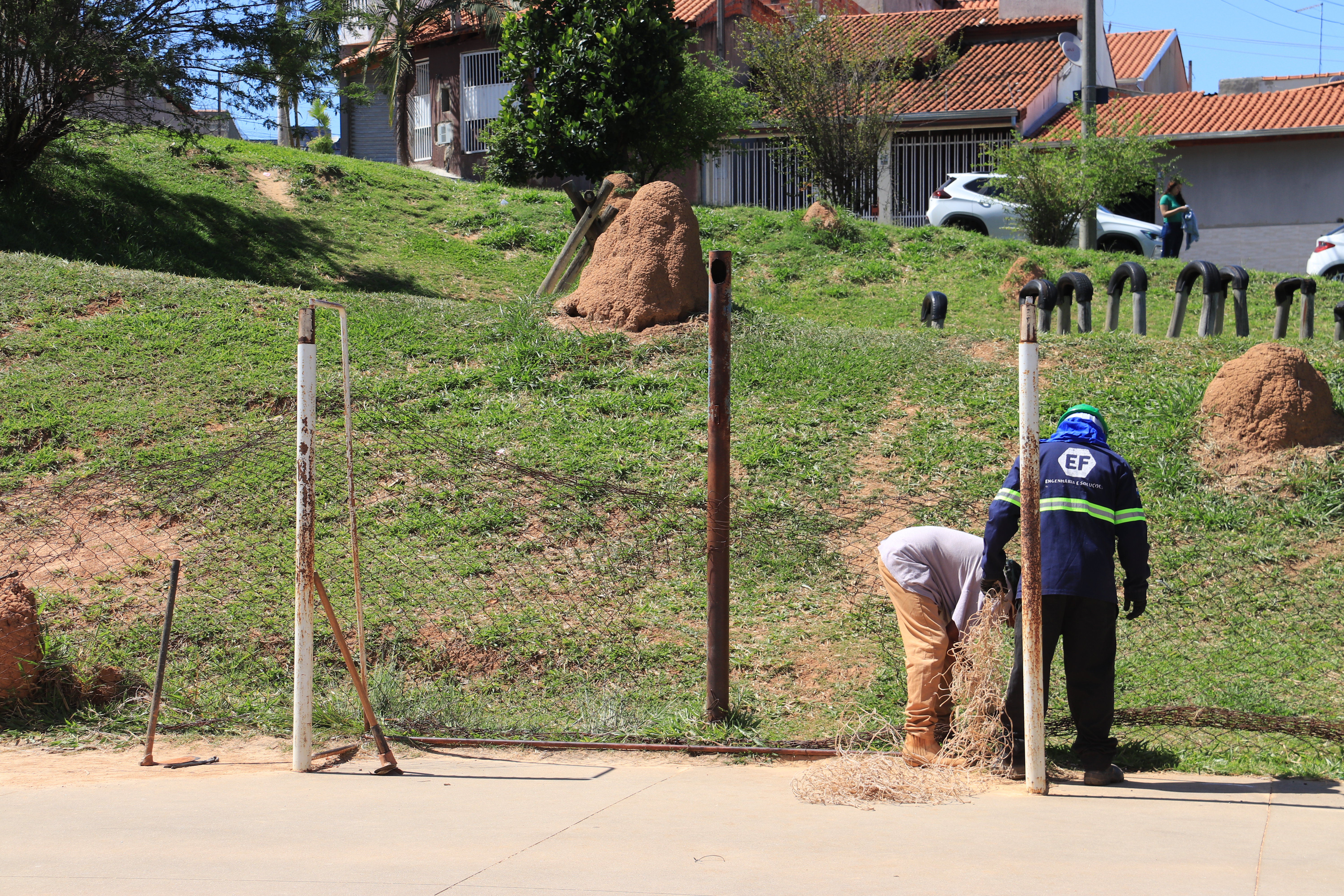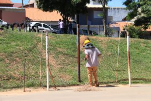 Além disso, os trabalhos realizados no local incluem reforma da quadra poliesportiva, implantação de portão de acesso, troca de alambrados internos e externos, pintura do local e implantação de redes e traves esportivas.