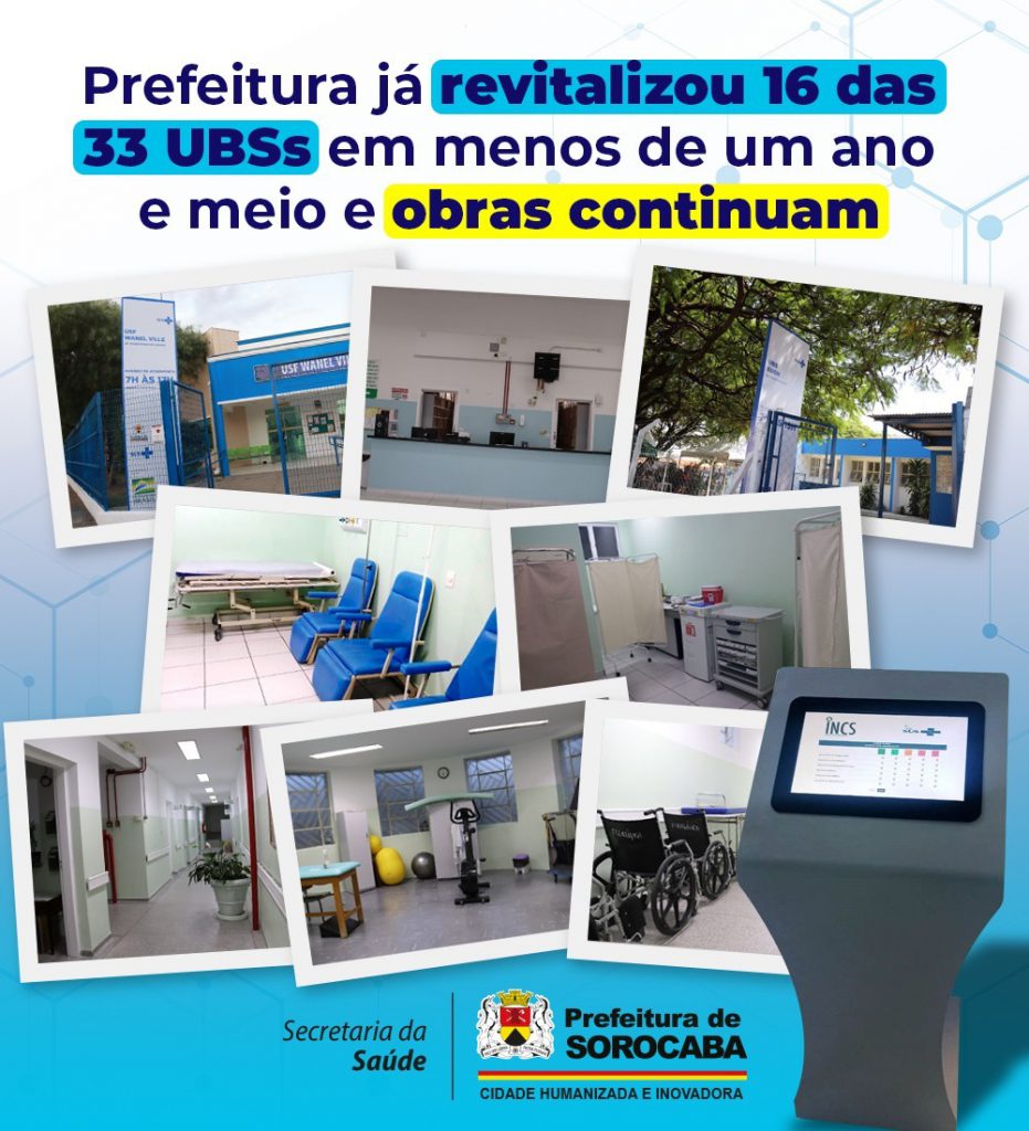 A Prefeitura de Sorocaba, por meio das Secretarias de Saúde (SES) e de Serviços Públicos e Obras (Serpo), já revitalizou, em menos de um ano e meio, desde 2021, 16 das 33 Unidades Básicas de Saúde (UBSs) da cidade e as obras continuam até contemplarem todas as unidades.