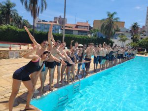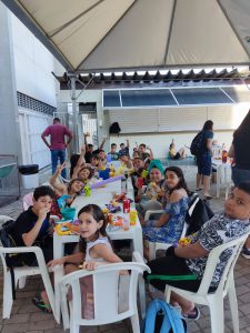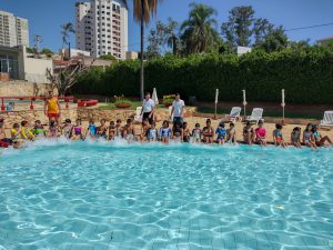 Além do passeio em um dia bonito de sol e calor, com direito à piscina e muitas brincadeiras, as crianças e adolescentes puderam aprender mais sobre a prática da natação, utilizando, por exemplo, a prancha e, ao final, também receberam um saboroso lanche.