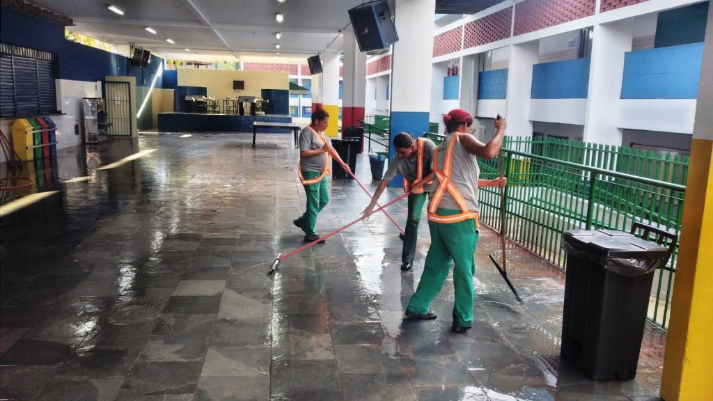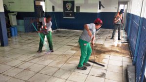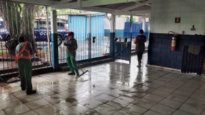 Auxílio às famílias afetadas prossegue e ações incluem ajuda do Município na limpeza da Escola Estadual “Prof. Ezequiel Machado Nascimento”, atingida por enxurrada.