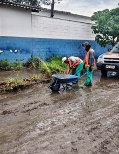 As equipes da Prefeitura seguem realizando os serviços de limpeza de vias e auxiliando moradores, cujos imóveis foram atingidos pelas enxurradas. Doze residências foram afetadas, entre os bairros Jd. Piratininga, Santa Rosália, Jd. Matilde e Vila Rica. Também na Vila Rica, ocorre a limpeza das taboas (vegetação) que foram arrastadas pela correnteza e que estavam obstruindo a passagem do córrego.