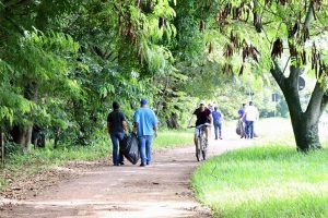 Junto com a caminhada, as equipes fizeram uma limpeza ao longo do trajeto, em uma extensão de cerca de 1.700 metros, de onde foram coletados mais de 20 sacos de lixo de 100 litros, com materiais descartados de forma irregular. Os resíduos começaram a ser recolhidos na Praça da Biodiversidade e, em seguida, o grupo dividiu-se em duas equipes, sendo que uma percorreu a margem do rio pela Avenida 15 de Agosto e a outra, pela margem na Avenida Dom Aguirre, até a Ponte Luiz Francisco Damian.