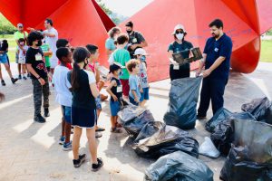 Ao final da Caminhada Ecológica, o grupo se encontrou com as crianças participantes do Coaves Kids (Clube Infantil de Observadores de Aves), que fizeram uma passarinhada, também na manhã de sábado (19), no Parque das Águas. Todos tiveram um bate-papo sobre a ação e os impactos do descarte irregular de resíduos sólidos urbanos.