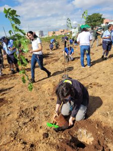 Para a ação ambiental, a Sema foi responsável pela indicação da área pública e por fornecer todo o suporte técnico necessário, além de ceder as mudas produzidas no viveiro municipal e todos os insumos necessários para a iniciativa, como terra vegetal, adubo, calcário e os tutores (bambus para suporte das mudas).