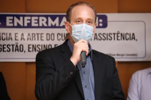 Vencedor do concurso interno da Secretaria da Saúde (SES), para eleger a melhor frase que representasse o trabalho da enfermagem durante a pandemia, o servidor Jhonata Carnelós esteve presente e explicou a construção de sua ideia. “A enfermagem está presente em todos os caminhos, na gestão, no ensino, na pesquisa e, sobretudo, na assistência. Com essa visão, consegui construir a frase vencedora”, explicou.
