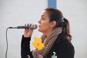 “Como esse é um tema muito delicado, antes mesmo da palestra e durante toda a semana, iniciamos as ações em sala de aula, para que os alunos pudessem saber melhor do que se trata. Buscamos abordar, de forma leve, um assunto que, por si só, é muito denso e difícil. As turmas se empenharam bastante, fizeram pesquisas e produziram as flores, que são símbolo da campanha e foram oferecidas a todos os alunos e palestrantes”, comentou a diretora da E.M. “Flávio de Souza Nogueira”, Thaís Mirela Andrade Reis.