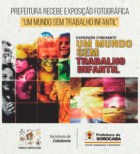 Em referência ao Dia Mundial de Combate ao Trabalho Infantil, celebrado no dia 12 de junho, a Prefeitura de Sorocaba, por meio da Secretaria da Cidadania (Secid), da Coordenadoria da Criança e do Adolescente e do Conselho Municipal dos Direitos da Criança e do Adolescente (CMDCA), traz para o Paço Municipal a exposição fotográfica itinerante “Um Mundo sem Trabalho Infantil”, com imagens ilustrando situações que revelam a problemática da exploração do trabalho de crianças e adolescentes.