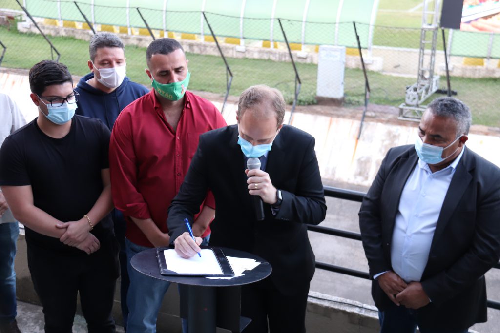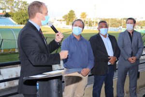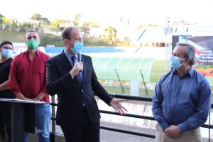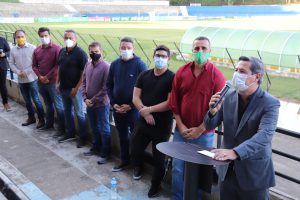 O prefeito Rodrigo Manga se reuniu, na tarde desta segunda-feira (10), na arquibancada do Estádio Municipal “Walter Ribeiro”, com feirantes, vereadores, representantes do Sindicato dos Feirantes e da Associação dos Feirantes de Sorocaba, para anunciar uma série de ações que visam regularizar o setor e trazer melhorias às feiras-livres da cidade.