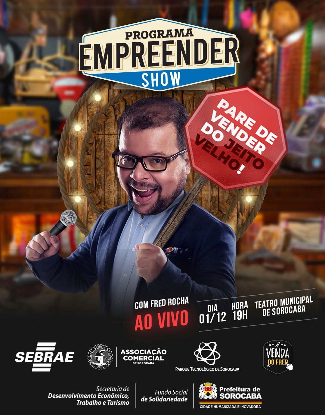 A Prefeitura, por meio da Secretaria de Desenvolvimento Econômico, Trabalho e Turismo (Sedettur) e do Parque Tecnológico de Sorocaba, em parceria com o Serviço Brasileiro de Apoio às Micro e Pequenas Empresas (Sebrae) e a Associação Comercial de Sorocaba (ACSO), realizará, no dia 1º de dezembro, às 19h, no Teatro Municipal “Teotônio Vilela”, uma palestra sobre vendas com o consultor e especialista em varejo Fred Rocha.
