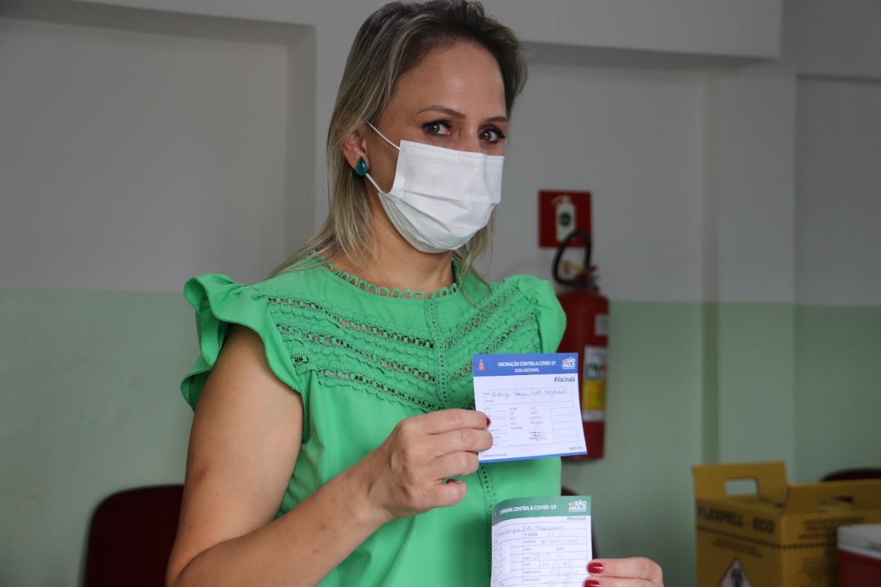 No mesmo dia da primeira-dama, a munícipe Ariane Garcia Dias da Silva concluiu o ciclo vacinal com a terceira dose. “A vacina veio para amenizar os sintomas, evitando a necessidade de internação”, comenta.