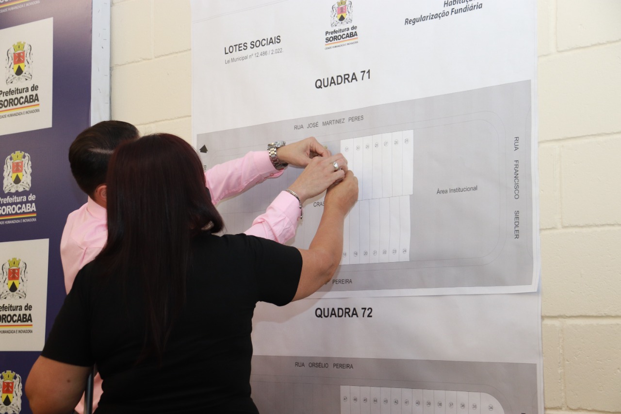 A Prefeitura de Sorocaba, por meio da Secretaria da Habitação e Regularização Fundiária (Sehab), se reuniu, na noite desta segunda-feira (25), com as primeiras 14 famílias em situação de vulnerabilidade social a serem beneficiadas pelo programa Casa Digna Sorocaba – Lotes Sociais, no Salão de Vidro do Paço Municipal. Cada contemplado assinou o termo de aceite e teve a oportunidade de escolher seu terreno, em uma área pública localizada no Parque Vitória Régia, na Zona Norte de Sorocaba.