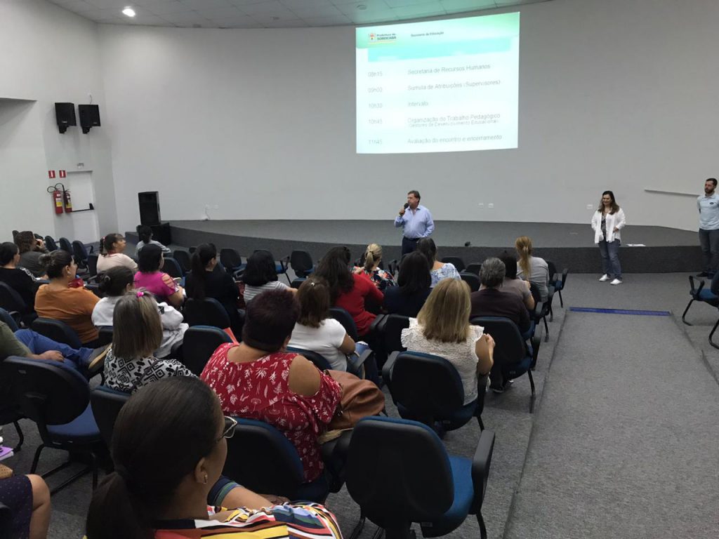 Os novos profissionais, que iniciam as atividades na próxima segunda-feira (9), foram recepcionados pelo secretário da Educação, Wanderlei Acca, e receberam orientações pedagógicas por parte dos supervisores de Ensino, Everton Silveira e Solange Aparecida da Silva Brito, e pelo gestor de Desenvolvimento Educacional, Gilmar Piccin.
