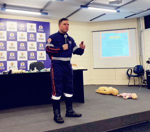 A capacitação foi conduzida pelo enfermeiro Thiago Martins de Oliveira e abordou atualizações no atendimento nas unidades em casos mais prementes, além de demonstrações práticas de manuseio de equipamentos em situações emergenciais, tais como manobra de desengasgo de bebês e adultos, suporte básico e avançado de vida para bebês, crianças e adultos, além de imobilizações e controle de sangramento.