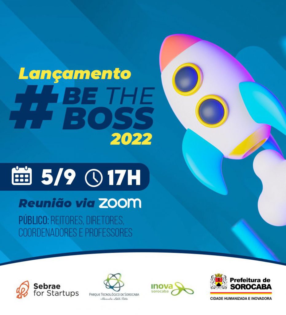 O programa #BeTheBoss 2022 está sendo desenvolvido pelo Parque Tecnológico de Sorocaba (PTS), junto à agência Inova Sorocaba, e o Sebrae Sorocaba, por meio do programa Sebrae for Startups. Conta, ainda, com a parceria de Instituições de Ensino Superior e Entidades Sociais da Região Metropolitana de Sorocaba (RMS).