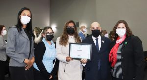 Também acompanharam a premiação, as chefes de Seção no Cadi, Allyne de Moura Silva e Franciele Alves Pereira, e a chefe da Divisão de Apoio Técnico Pedagógico na Sedu, Mirela Juliana Chagas.