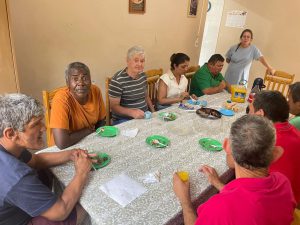 As atividades realizadas na residência terapêutica incluem caminhadas e passeios externos a parques, praças e espaços de lazer, por exemplo, além de oficinas manuais que realiza em outro equipamento público. Os deslocamentos são feitos utilizando o transporte público, proporcionando, com isso, também a possibilidade de se ambientar com os demais residentes em tratamento, desfrutando de um dia a dia de convivência social. “Ele tem evoluído muito na socialização com os demais, além de ser muito colaborativo com toda a equipe e os colegas. Todas as atividades despertam o interesse do Zé e o ajudam muito nesse processo importante de convívio”, explica a coordenadora da residência terapêutica, Paula Pires.