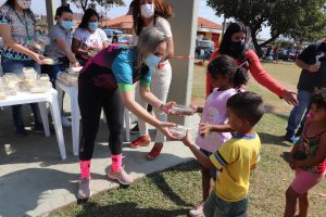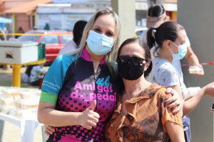 Quem prestigiou a programação comemorativa foi a moradora do Ipanema Ville Cristiane Francisca da Silva. Diarista, ela está desempregada há três anos e foi retirar a sua cesta básica junto à equipe da Secretaria da Cidadania. “Essa cesta básica vai nos ajudar muito. Moro com meu filho e meu marido, que também está desempregado, só fazendo bicos, como eu”, contou a munícipe, que também aproveitou a ocasião para aferir a pressão e medir a glicemia com a equipe da SES.